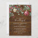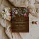 Rustiska vinterbröllopsinbjudningar med träbakgrund, festiva vattenfärgade blommigtar och blad, julafton röd och guld-bubblor och en elegant bröllop-mall som är lätt att anpassa.