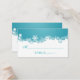 Snöflingturkos blått kort för vinterbröllop, med vit gräns av snöflingor på glödande akvattblått bakgrund. Ett val av perfekt inför vintern, juldecember bröllop.