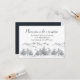 Låt dina gäster veta var din mottagning kommer att hållas med detta charmiga handritade snötäckta berg, träd och hjort bröllopsmottagningskort.