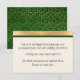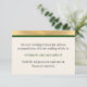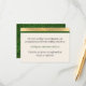 Vinterbröllsinformation inklusionskort gjort i elfenben med en guld- och grönrandig remsa längst upp. Baksidan av kortet har ett guld på grön virvelmönster. Personifiera texten för att passa dina bröllopsbehov. Matchande produkter finns tillgängliga.