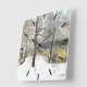 Konstnär av Zolotareva. Vattenfärg på silke - manuell teckning; stenbron genom floden i byn.A vy av en bron som täcks av snö i skogen. Skogscen i Snö, fryst.Det finns snö, spektakulär miljö.