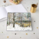 Konstnär av Zolotareva. Vattenfärg på silke - manuell teckning; stenbron genom floden i byn.A vy av en bron som täcks av snö i skogen. Skogscen i Snö, fryst.Det finns snö, spektakulär miljö.