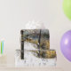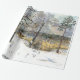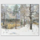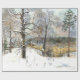 Konstnär av Zolotareva. Vattenfärg på silke - manuell teckning; stenbron genom floden i byn.A vy av en bron som täcks av snö i skogen.