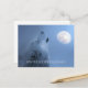 Vinterdagjämning välgångskort med en vacker varg som ylar mot månen. Årets längsta natt, det är magiskt.