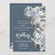 Vinterdammig blå blommigt snö bröllop inbjudningar