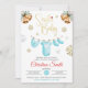 Kute Watercolor Santa Baby Guld Snöflingor Winter Pojke Shower bjudan.