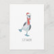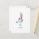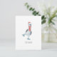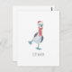 Ett vykort med en fågel i julhatt och halsduk, en blåfotad fågel från Galapagosöarna, som inte gillar att stanna i kallet