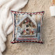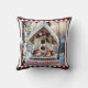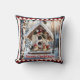 Pillow med en målning av ett vinterfågelhus i en skog täckt av snö. Snygg till jul.