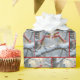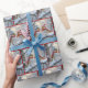 Två vinterfåglar på en snövit gren är klädda i mysiga hattar och ärlor med rött hjärta mellan dem