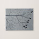En liten flock fåglar lever högt i ett fågel träd på en vintermorgon i väntan på den första uppvärmningen av sol.