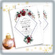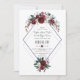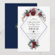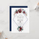 Elegant, vinröd, vit blomsterkort design. Den har vackra vinröda, vita akvarellblommor, tall, bärbuketter, delikat diamant ram, unika blomster pilar med hjärtan som avdelare, på baksidan en marinblå bakgrund. Använd verktyget Anpassa för att lägga till din information. För matchande artiklar, besök min Vinterblomsterbukettssamling.