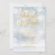Mjuka snöflingor faller över en magisk vinterbakgrund på denna eleganta julfestinbjudan. Designad av Thisisnotme©