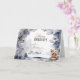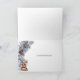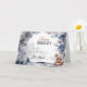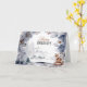 Ett vackert vattenfärgstryck med en trädbeläggning som har fem träd i den avstånd och snö täckte löv och koner i gräs i förgrunden som bildar en gräns kring mallar som kan vara personliger. En enda rödräv är sitta i högernas hörn och har söt över och omkring honom. Insidan har samma dekorativa inslag med ytterligare en mall för din anpassningsbar hälsning till vänner, familj och närstående.