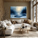 Denna fantastiska abstrakta målning fångar den stillhet som råder i en dimmig vinterskog, med en lugn flod som slingrar sig genom det snötäckta landskapet. Scenen härmar användningen av djärva palettknivsdrag, som ger textur och djup åt det isiga vattnet och de omgivande träden. Kombinationen av dimmiga blåtoner och mjuka gråtoner ger en lugnande, eterisk atmosfär till liv, vilket gör detta verk till ett perfekt tillägg för alla som söker fredlig, naturinspirerad väggkonst. Den abstrakta expressionismtekniken skapar en unik och visuellt slående tolkning av ett stillsamt vinterlandskap.