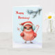 Ett vismatiskt vinterfödelsedagskort med en ädel röd fågel i en julhatt med polkagrisar, som står i snö under ett snövilt gräs gren. Perfekt för att fira en speciell födelsedag som infaller under julhelgen. Ett lätt, festligt val att sprida cheer och leenden.