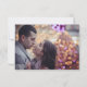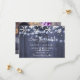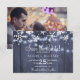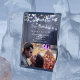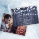 Chicens moderna vinterbröllop sparar datumkortsmallen med ditt anpassningsbar-foto (vågrät med utfall/liggande) på baksidan. Det vita snöflingor och det hängande tvinklade ljus på mörk blått grått-lingets bakgrund gör en vacker vinterdesign på framsidan. Perfekt för en rustig elegant i land vinter | säsong under det område som utlöstes av bröllop.