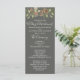 Låt dina gäster veta vad som står på menyn för din bröllopsmottagning med hjälp av denna vintergrå eleganta skript bröllopstema meny.
