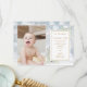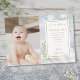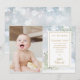 En elegant vinter 1-års tack-fotograf med skogsgröna blad på en vinterfrostig bakgrund. Personifiera med din foto och speciella födelsedag tack-meddelande i chic guld typografi. Ett perfekt sätt att säga tack! Designad av Thisisnotme