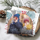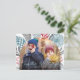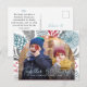 Modern julkort med båge ram, ditt favoritfoto, vintergrönhet av kotte tallbarr citrus och lövverk. Tillsammans & God Jul i script kalligrafi och familjenamn anpassad hälsning i klassisk serif stil