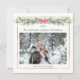 Julplatta kort med ditt foto. Denna utformning har en guld-effekt, rektangulär ram med vintern grönlöv och röda bär.