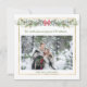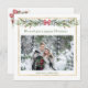 Julplatta kort med ditt foto. Denna utformning har en guld-effekt, rektangulär ram med vintern grönlöv och röda bär.