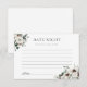 Vi presenterar vårt fantastiska vinterblommiga bröllopsdusch "Dejtingsnattidéer"-följekort, med en vacker blommig design gjord av buketter med vita rosor och vintergrönhet, tallkottar och eukalyptus.