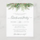 Vacker och prisvärd julinbjudan för högtiderna, med handmålade botaniska akvarellillustrationer av vintergrönska, tall- och granbarr, kottar och järnekar.