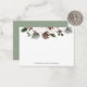 Vinterlig jul Akvarell grönsak Notkort med anpassad namn mall på en vit bakgrund och en fantasifull vinterbukett av kotte, bomull, järnek och julgran kvistar. Personliga notkort för genomtänkta anteckningar på vintern. Kan köpas med eller utan kuvert.