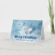 En glad jul hälsningskort med ett meddelande på insidan, som är anpassningsbart. Designad med en bild av en majestätisk hjort på vintern. En isblå filtrerad bakgrund ger detta foto en kall vinterkänsla med en magisk känsla. En ädel hjort står på en kulle med vintergröna tallar i bakgrunden