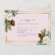 Vackra vita rosor, eucalyptusblad, rustika tallkottar och en guldram inramar detta vinterbrölloppsobjekt som är en del av en större kollektion som inkluderar budgetvänliga bröllopsinbjudningar, spara datum-kort, RSVP-kort, etiketter, presenter, brevpapper med mera. För en GRATIS guide för vinterbröllopsplanering, besök weddingdesignchic.com.