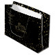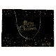 Glad jul-presentpåse med julhälsningar, personlig. Vinter jul glad jul och nyår gyllene presentpåse för föräldrar och barn, vänner. XMAS-presentpåse dekorerad med magiska jul symboler, guldglitter ljust guldkonfetti, guld snöflingor och mer festliga detaljer lyxig jul guld mönster. Monogram. Originell trendig lyxig grafisk design. Personliggör dem genom att lägga till namn eller önskemål text. Tvåsidig design dekoration.