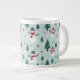 Det här är ett mugg med vintern. Snögubbar, snöflingor och Julgranar kom tillsammans.