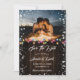 Rustic land vinterbröllopsfoto sparar datumkortet som innehåller ljus och snöflingor mot ett lingträ på framsidan och två brännhjärtskärmar och snöflingor på baksidan. Skicka ut det roustiska fotot från bröllop som sparas datumna för att komplettera ditt land-temade vinterbröllop party. Du kan enkelt anpassa den här festen genom att spara datumet med din foto- och bröllop-information.