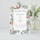 Utformningen har gräs, eukalyptus, röda och blå bär och annan grönt löv som omger en tunn faux guld ram och vit textruta. Det är en del av Vinterjulssviten Greenery Bröllop med kort som skapats av enbart Farmhouse Press.