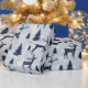 Den här elegantens julomslutning pappra har en seriös vinterdesign med stora hjortar omgivna av delikat snöflingor och stiliserat gräs träd. Det marinblå och blek grått färg fångar kallets innersta väsen, vilket gör att du får en modern och feg beröring. Perfekt för helgdag ger denna utformning en sofistikerad och fredlig vinteratmosfär för alla närvarande.