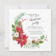 Kvadratiskt format | Vinterjulfest i firande. Enkelt. Modern. Elegant. Med: en grå andedräkt med röda poinsettia-blommor, blandad med vit vild ro, Holly med bär, Mistletoe, gräs-krukor och löv-sprig. Copyright.