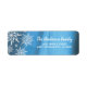 Moderna returetiketter i julklapp med vinterblå bakgrund, mousserande vitt snöflingor, familjens namn och adress.