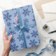 "Vintern Snöflingor julgåva med blått sömlöst omslagning Pappert" erbjuder en roligt och en lekfull design med snöflingor som är utspridd över pappra, perfekt för att skapa ett vismiskt vintertema.