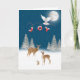 Vit duva med julgranstext på sträng i snöflingor med hjort och kanin.