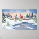 Vinterjulslandskap med hus täckt av snö poster