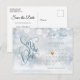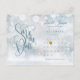 Detta vackra vinterkort för att spara datumet har en kalender och ett vackert guldhjärta som markerar ditt speciella datum mot en vinterfrostig bakgrund med snöflingor. Baksidan har ytterligare detaljer om hur man sparar datumet, inklusive er bröllopswebbplats, med er returadress och utrymme för mottagarens adress. Designad av Thisisnotme