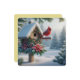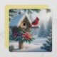 Vinterkardinal vid ett festligt fågelhus julkort