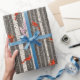 Röda kardinalfåglar av hankön och bruna och röda kardinaler av honkön i en snöfågelskog i träd på vintern kväll, jul helgdag mönster.