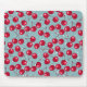 Vinterkörsbär. Rödmogna körsbär på grått-turkos med vita prickar.