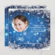Ett fantastiskt blått och vitt mönster med snöflingramar, fallande snöflingor och ett runt bildfönster för ditt favoritfoto. Perfekt som julkort eller inbjudan till vinterfödelsedagsfest. Kortet är lätt att anpassa med din text, teckensnitt, typsnittsfärg och val av sex papperssorter.