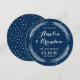 Vitaktigt och modernt spara datum meddelande med vinterkrans och polka dots mönster med marin blå bakgrund. Denna utformning är perfekt för vinterbröllop och liknande teman. Andra färg finns tillgängliga.
