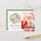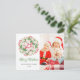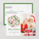 Ditt familjefoto finns på högerna. En modern vit poinsettia-blomma, grönt och rött bär är till lämnat. Julhälsningar är nedan. Ditt namn och året därpå.