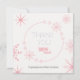Vinterland Tack för att du fyller ett år med Ro guld rosa färg och glittrade bakgrunder och snöflingor och ett personlig budskap. Den roliga texten säger: "Tack snö så mycket". Perfekt för första födelsedag.