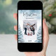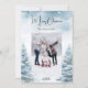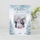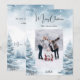 Vattentäckt vinterskog som bakgrund. Anpassa och lägg till din familj namn och ett foto. God jul skrivet med ett stil-skript som hanteras med trendig. Tillbaka: lägg till ditt meddelande och namn.