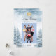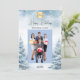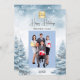 Vattentäckt vinterskog som bakgrund. Anpassa och lägg till din logotyp, namn och ett foto. Glad helg skrivet med ett stil-skript som hanteras med trendig. Tillbaka: lägg till meddelandet. Lägg till URL/länk för webbplatsen till QR-koden.